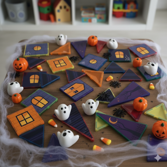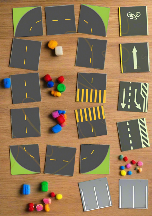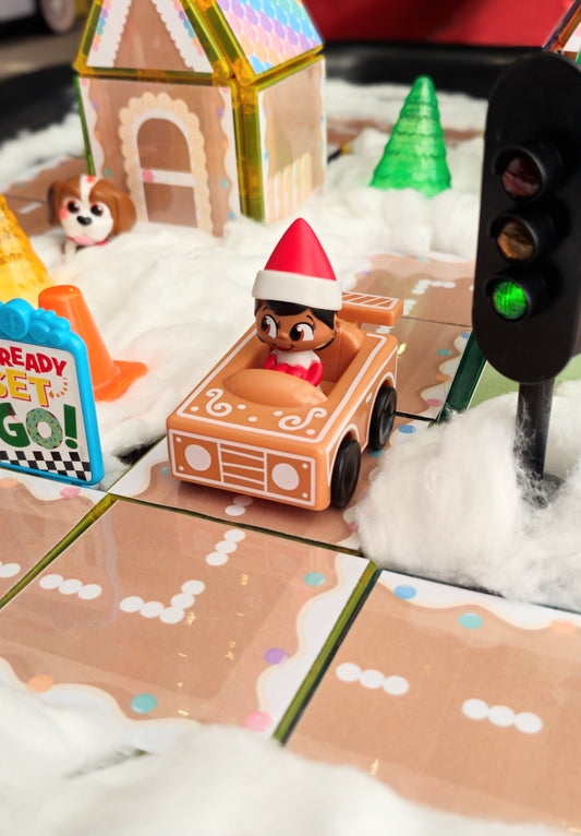 Magnet tile toppers - Gingerbread Town with road houses trees and traffic lights